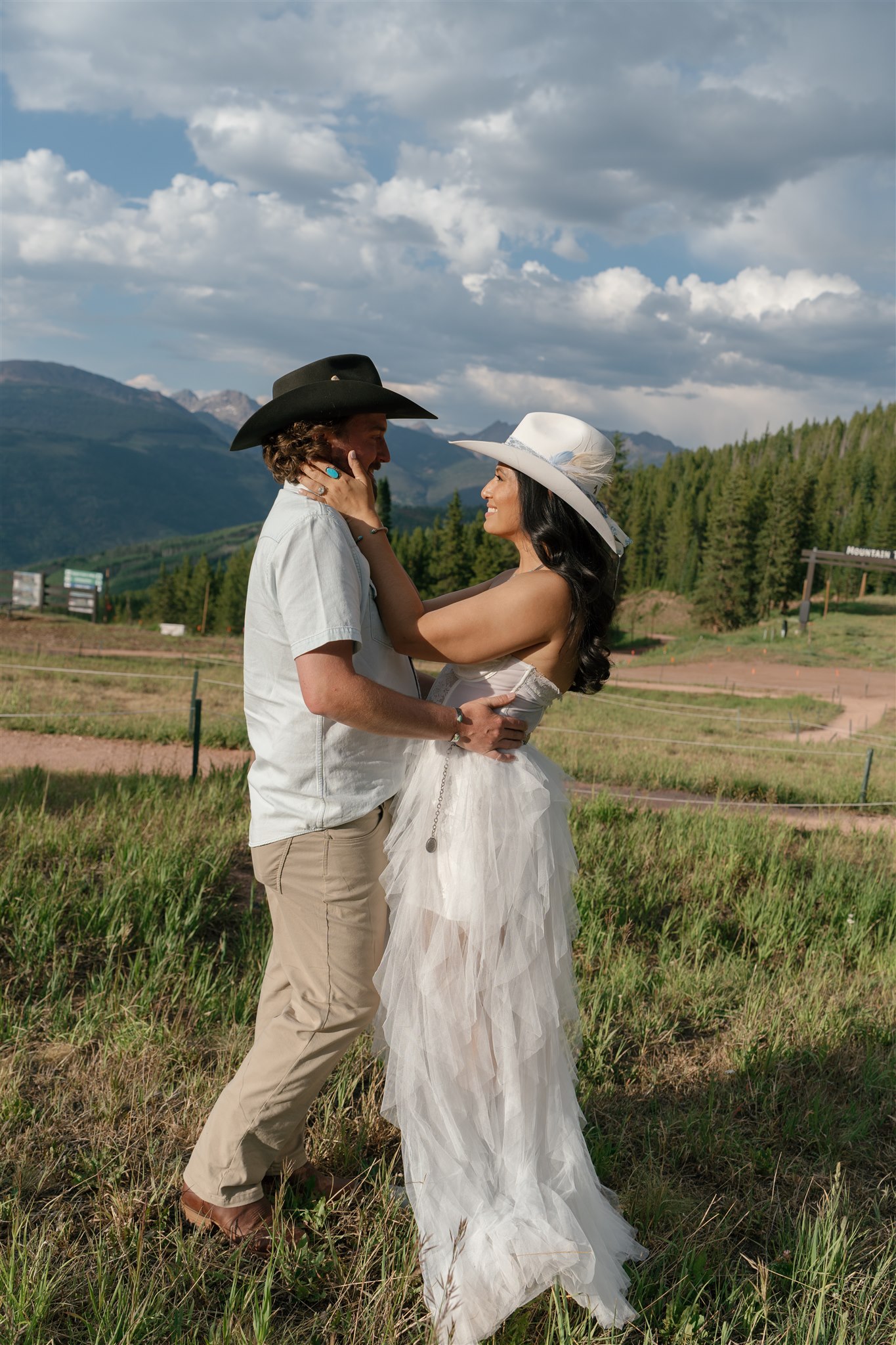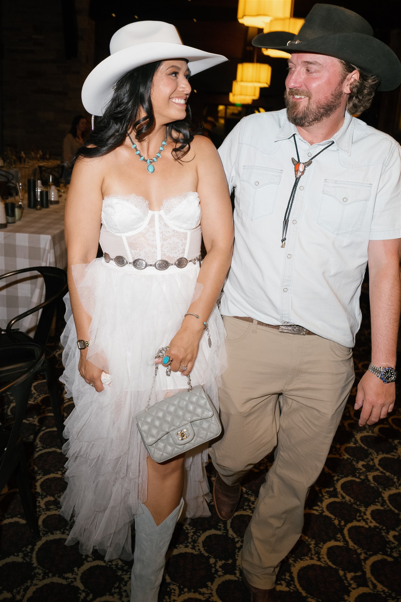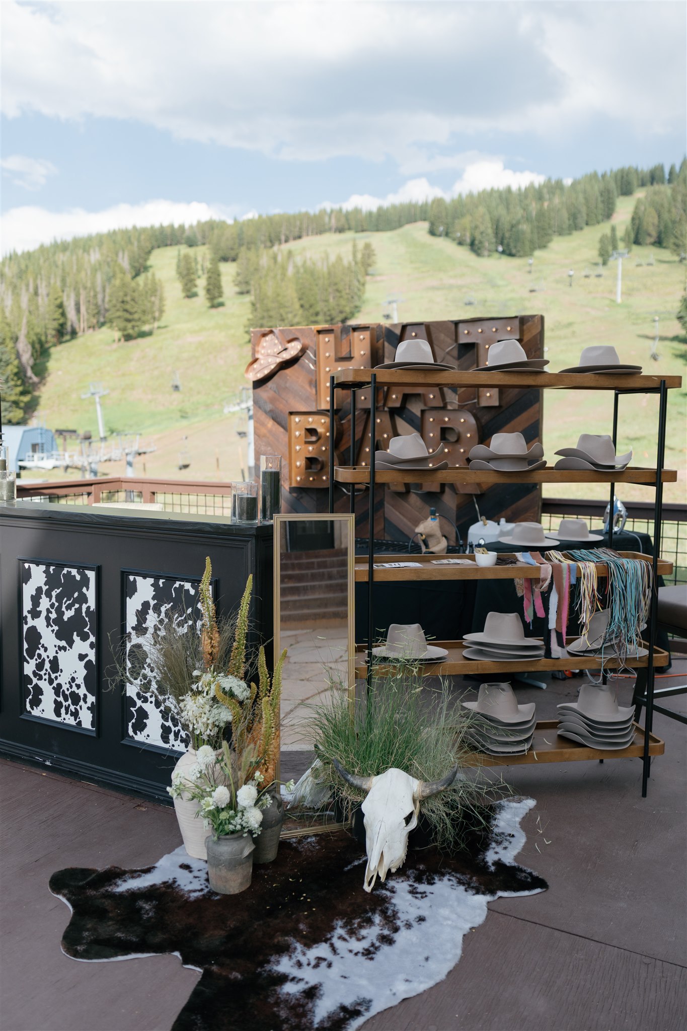 Their stationery suite set the tone from the very beginning, complete with the most adorable boot cut-out for the welcome party invitation. Guests arrived to a festive evening by gondola and were greeted with a hat bar, local bites, and sweeping views of the mountains. A warm Colorado welcome that hinted at the fun to come.