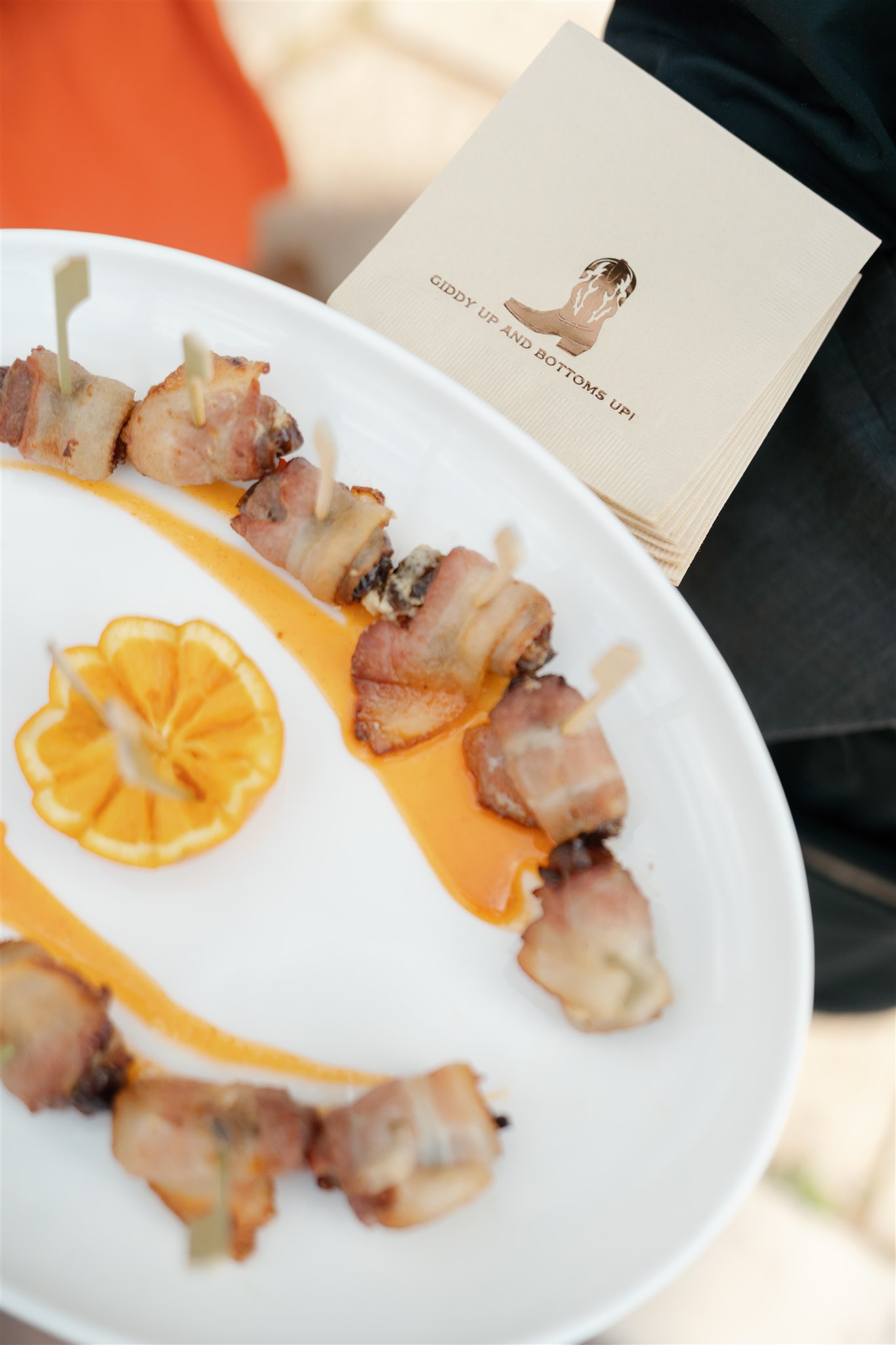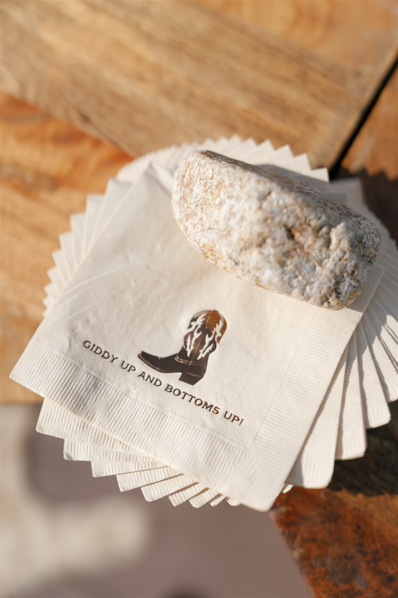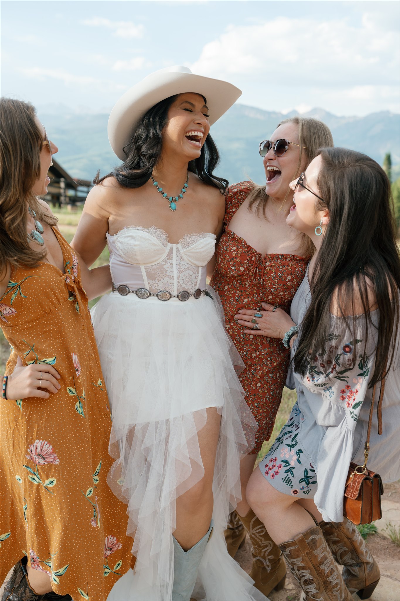 Their stationery suite set the tone from the very beginning, complete with the most adorable boot cut-out for the welcome party invitation. Guests arrived to a festive evening by gondola and were greeted with a hat bar, local bites, and sweeping views of the mountains. A warm Colorado welcome that hinted at the fun to come.