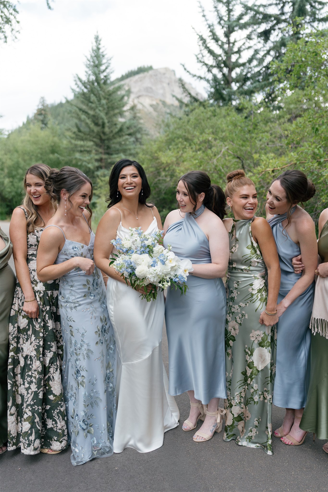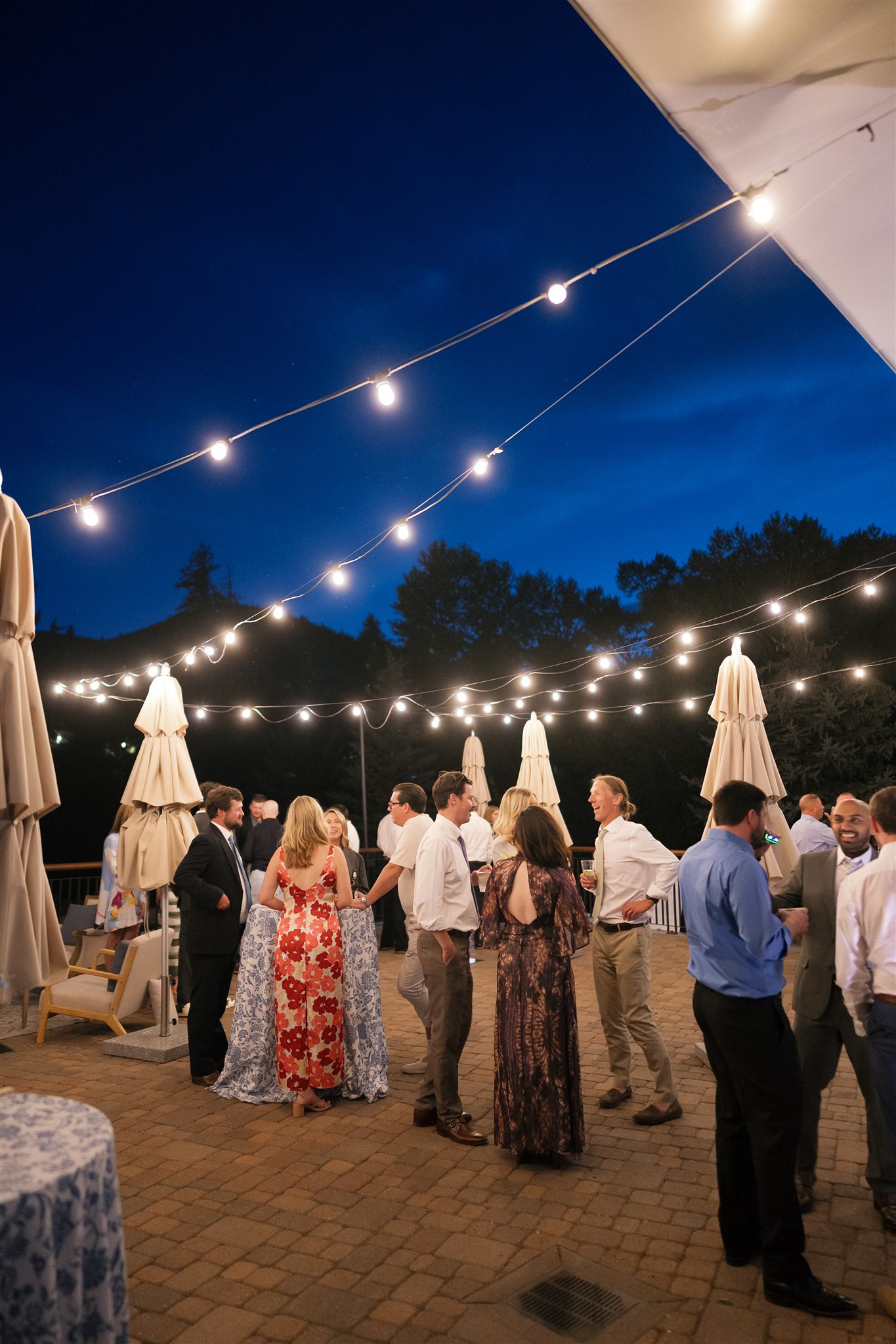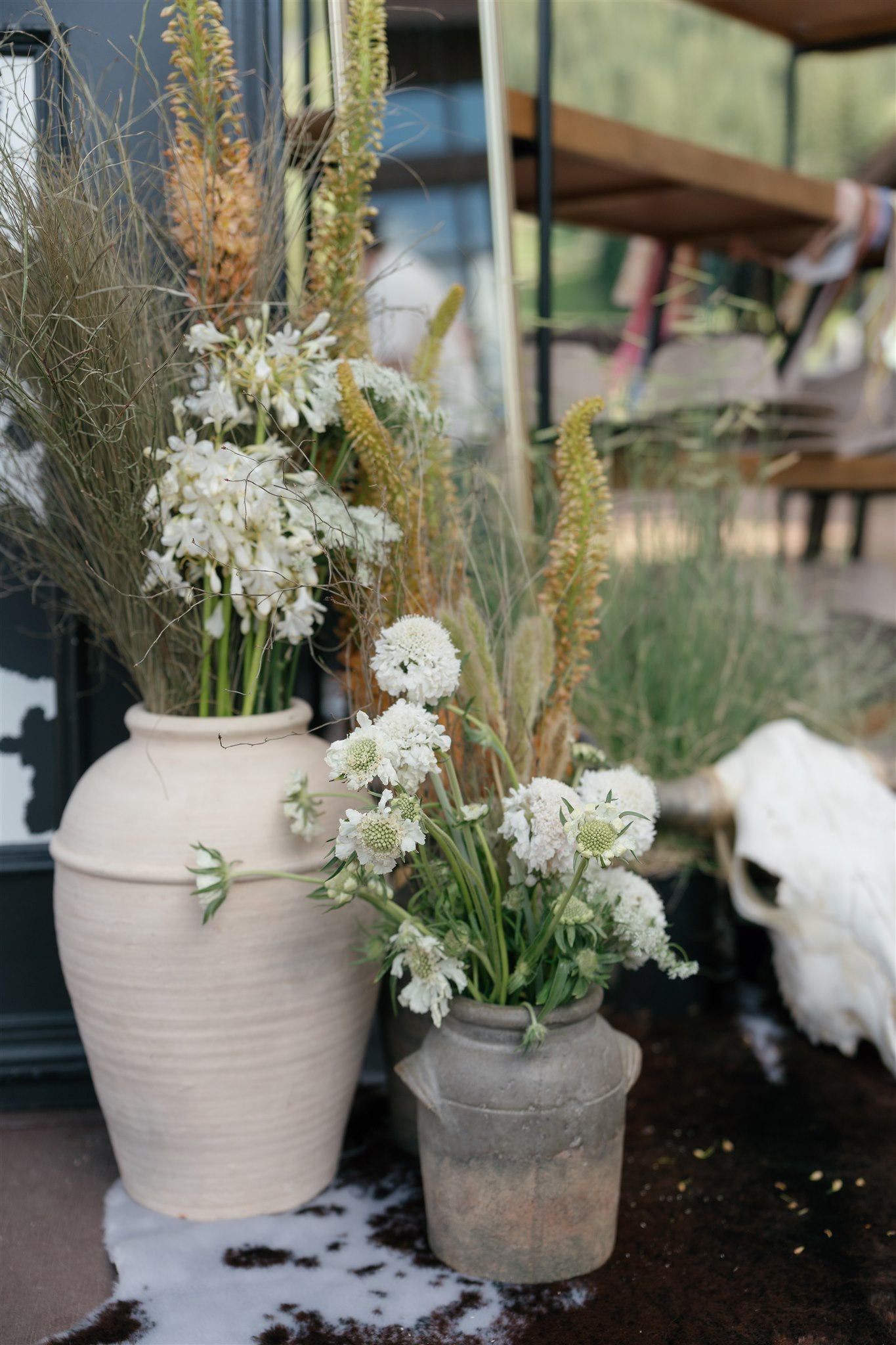 When the wedding day arrived, joy radiated from every corner. Autumn and Drew’s trust throughout the planning process allowed their vision to shine effortlessly; every chinoiserie vase, rattan basket, and patterned accent came together in harmony. As the sun dipped behind the peaks, the celebration shifted to the dance floor, where the couple’s close friendship with the band made for an unforgettable night. The energy was electric; no one could resist joining in as music and laughter echoed through the valley.