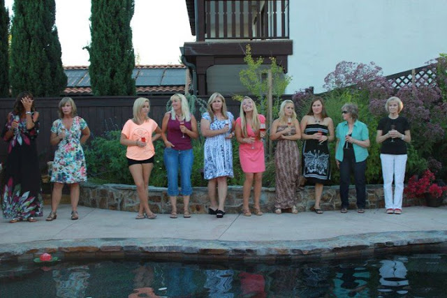After games my aunt had everyone make their way outside. Everyone grabbed a glass of champagne and stood around the pool. When I walked out I was shocked to see everyone ready to toast to me. Everyone said one word that described me. This was the best part of the shower by far. I was truly touched to hear the kind words everyone spoke. If you are planning a shower for someone and you want them to feel special I highly recommend you do this. I was amazed!