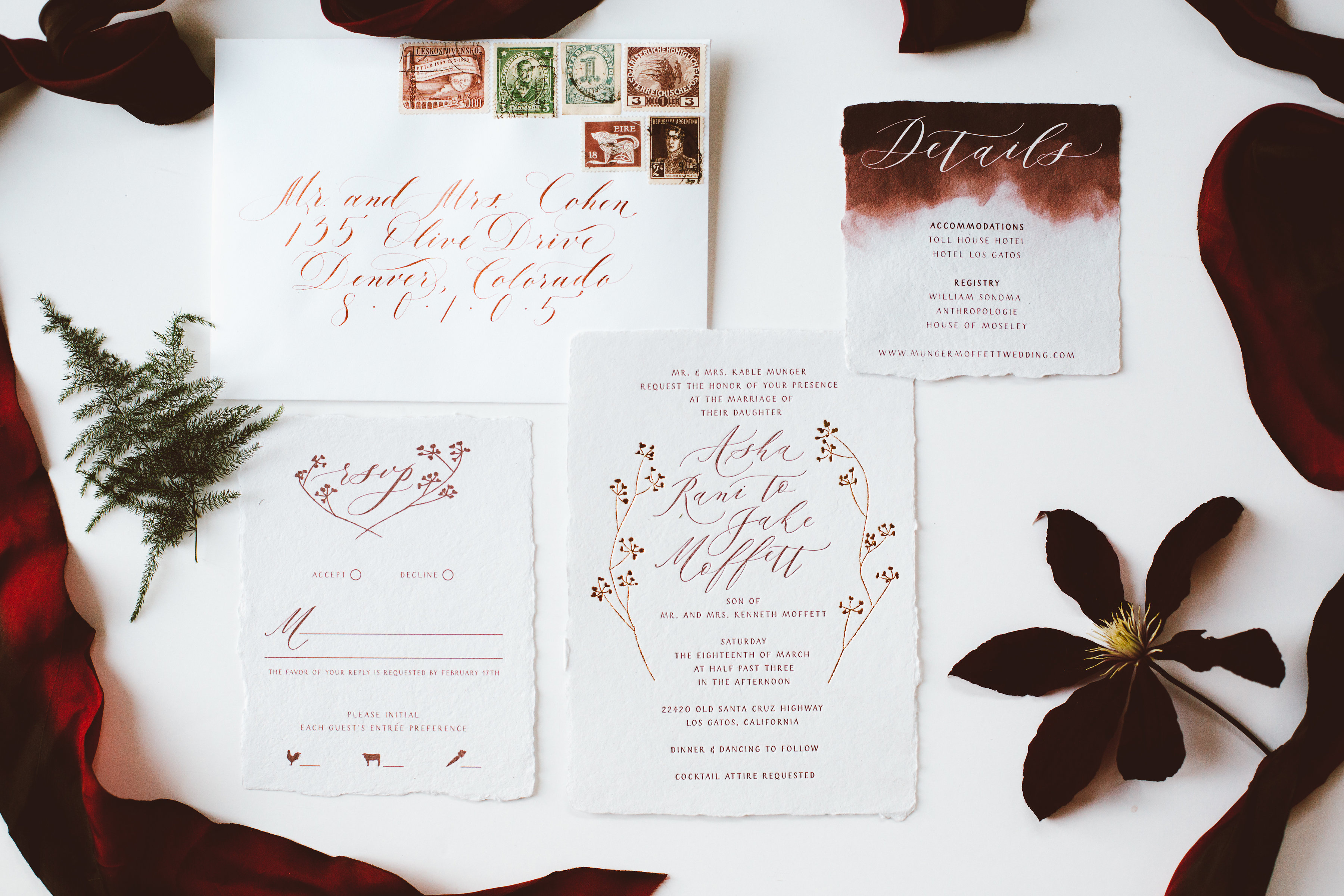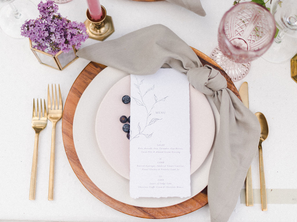 Her paper vision was impeccable – simple and elegant calligraphy, letterpress and foil printing, a custom map, vintage stamps, all the hallmarks of the top-tier design. But what really got me going was her idea of illustrating some memorable places her and her now husband have visited over the years to use instead of the table numbers. So adventurous! Her place cards indicated whether the guests were heading to New York, Florence, Big Sur, West Palm Beach, etc. They had to look for the illustration of that place to find the right table. You, at Calluna, may know which bride I am talking about…