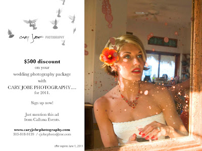 Cary is offering $500 off a wedding photography package if you mention this ad on our blog. What a generous offer Cary! Thank you!