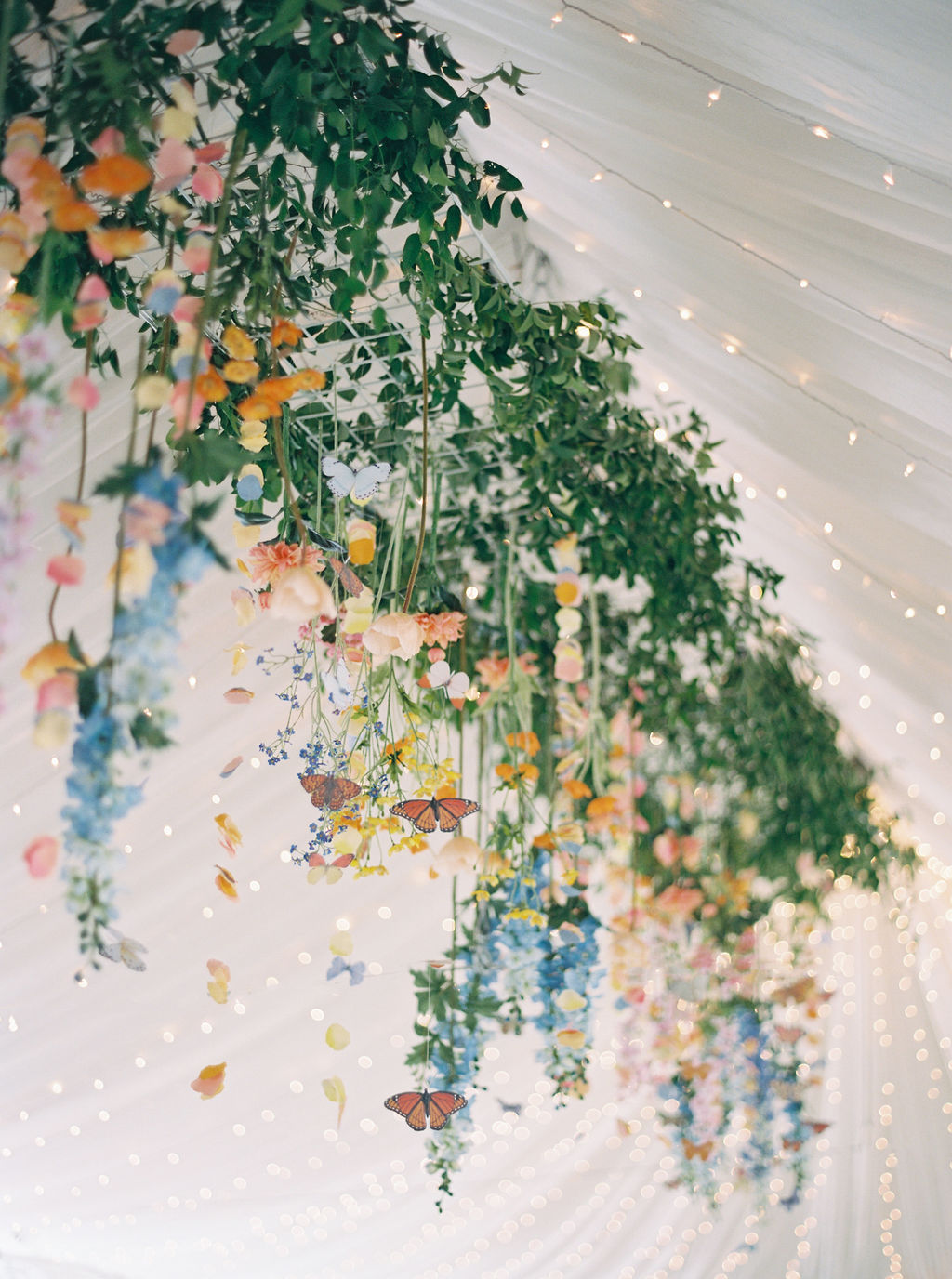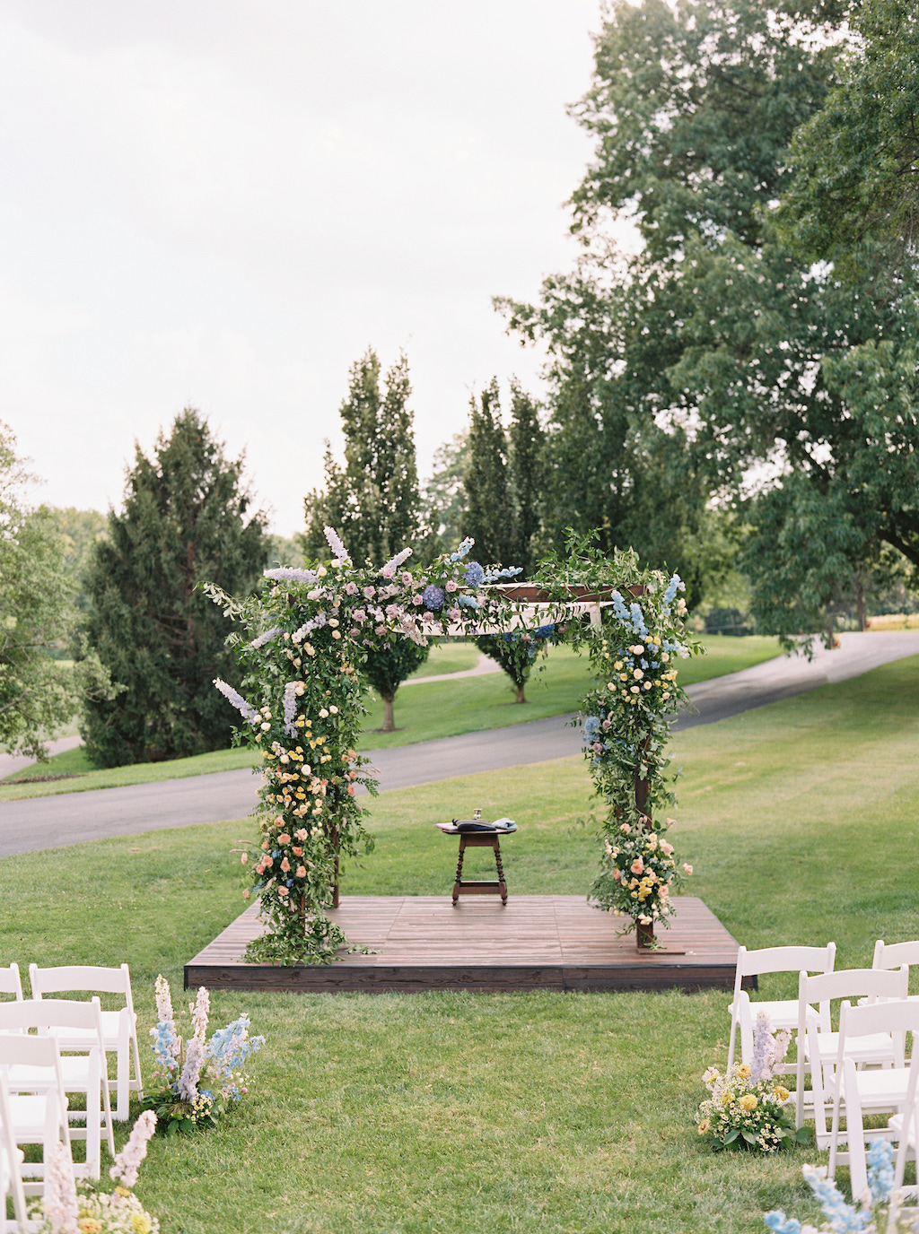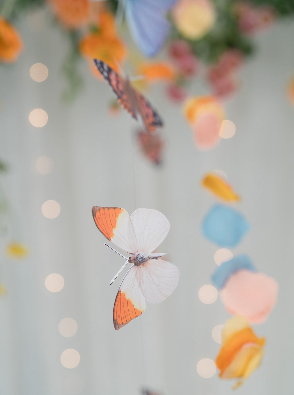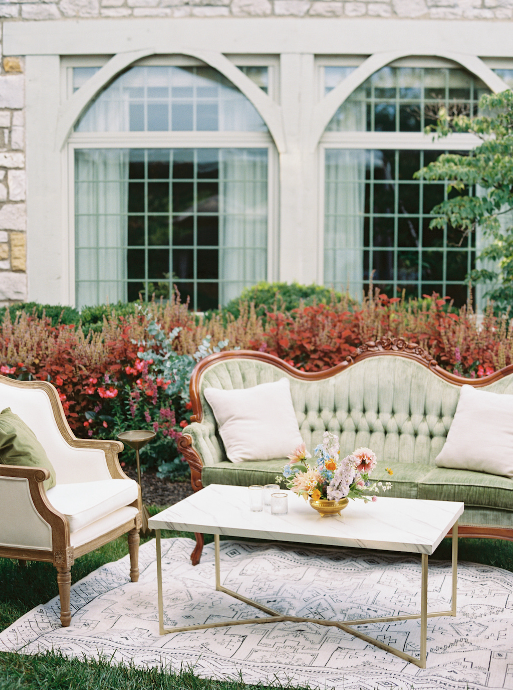 Leah chose Westwood Country Club in Clayton St. Louis, where she grew up, for their wedding and it was the perfect setting to have an outdoor ceremony and cocktail hour with a tented reception. Leah’s initial vision was centered around whimsical and colorful butterfly chargers combined with colorful florals for an overall English garden aesthetic. Their chuppah was adorned with gorgeous colorful flowers and both of Leah + Drew’s rabbis married them together, making the ceremony deeply personal and special. The overall aesthetic was a mix of color and eclectic decor with a touch of romance and whimsy. Leah’s vision was executed perfectly and it was a dream day in every way!