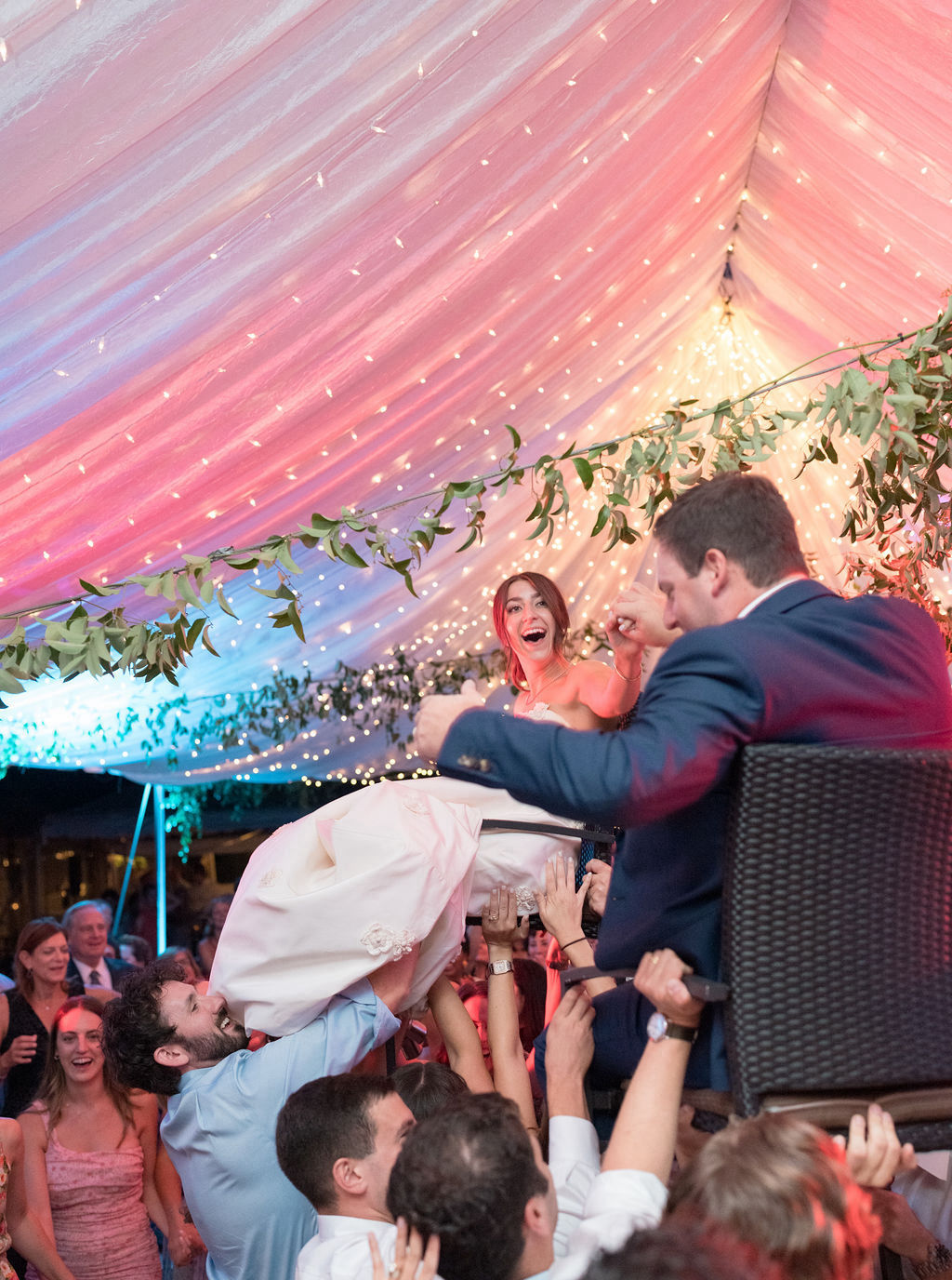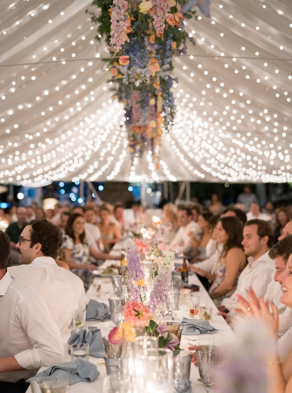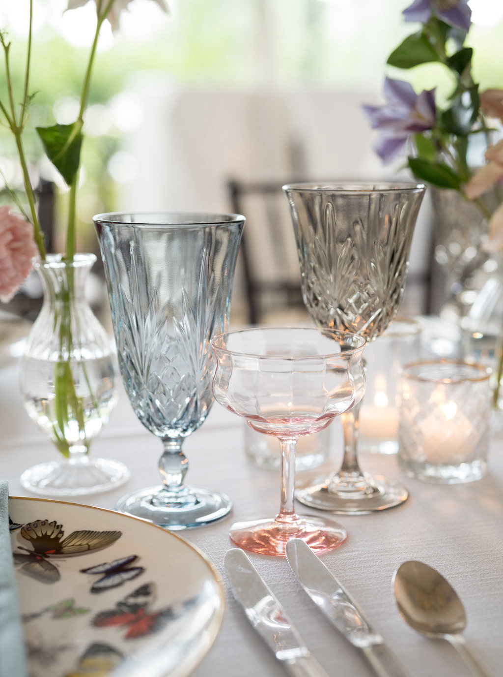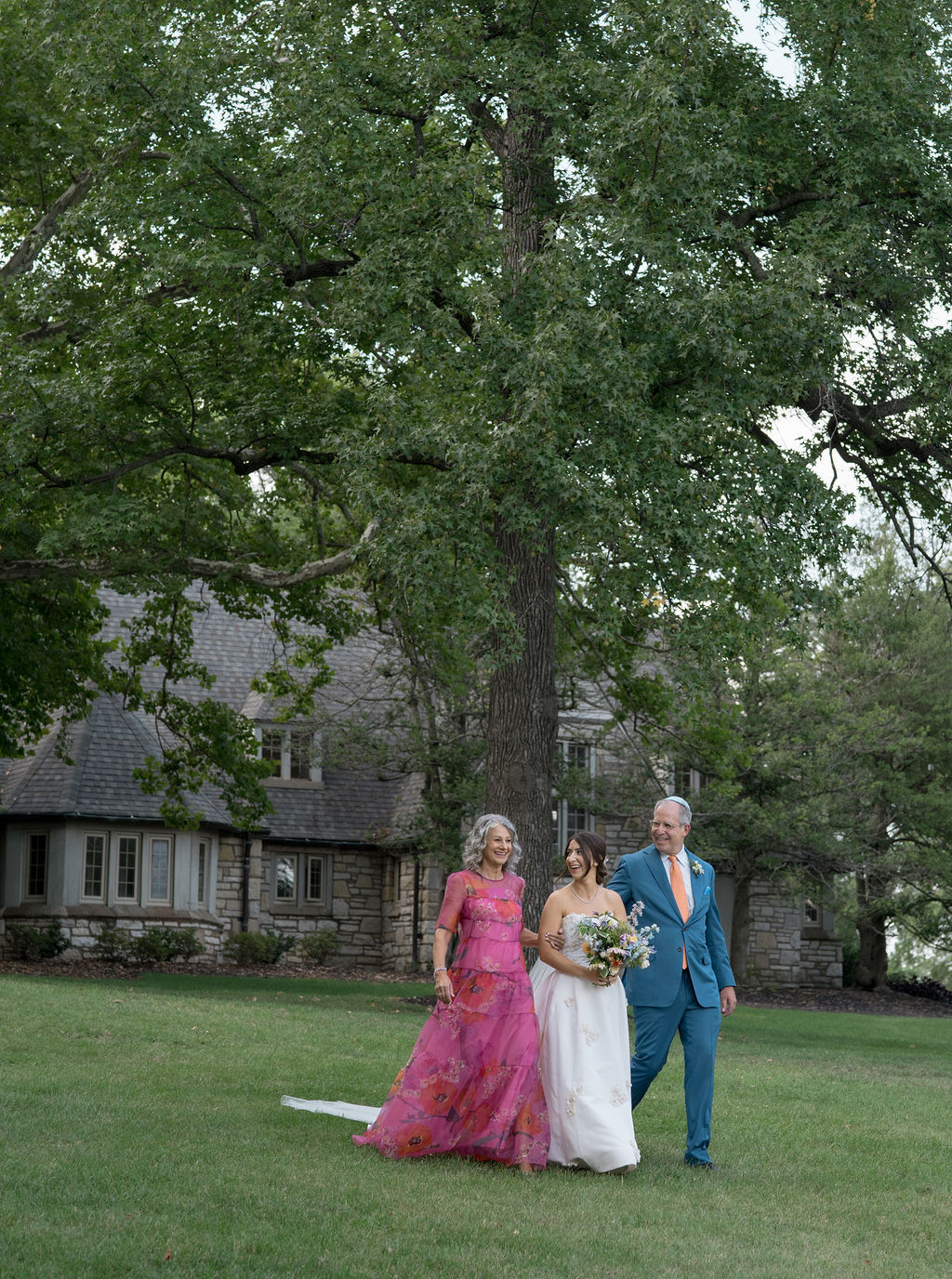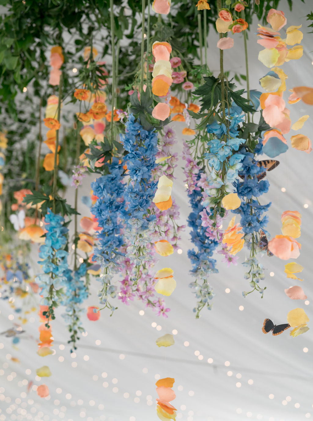 Leah chose Westwood Country Club in Clayton St. Louis, where she grew up, for their wedding and it was the perfect setting to have an outdoor ceremony and cocktail hour with a tented reception. Leah’s initial vision was centered around whimsical and colorful butterfly chargers combined with colorful florals for an overall English garden aesthetic. Their chuppah was adorned with gorgeous colorful flowers and both of Leah + Drew’s rabbis married them together, making the ceremony deeply personal and special. The overall aesthetic was a mix of color and eclectic decor with a touch of romance and whimsy. Leah’s vision was executed perfectly and it was a dream day in every way!