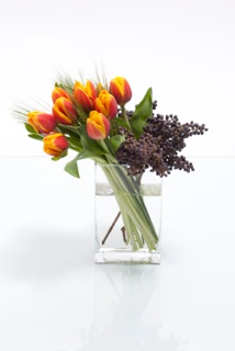 Start with 1 bunch of fall colored tulips (10 stems), 6-7 stems of green wheat