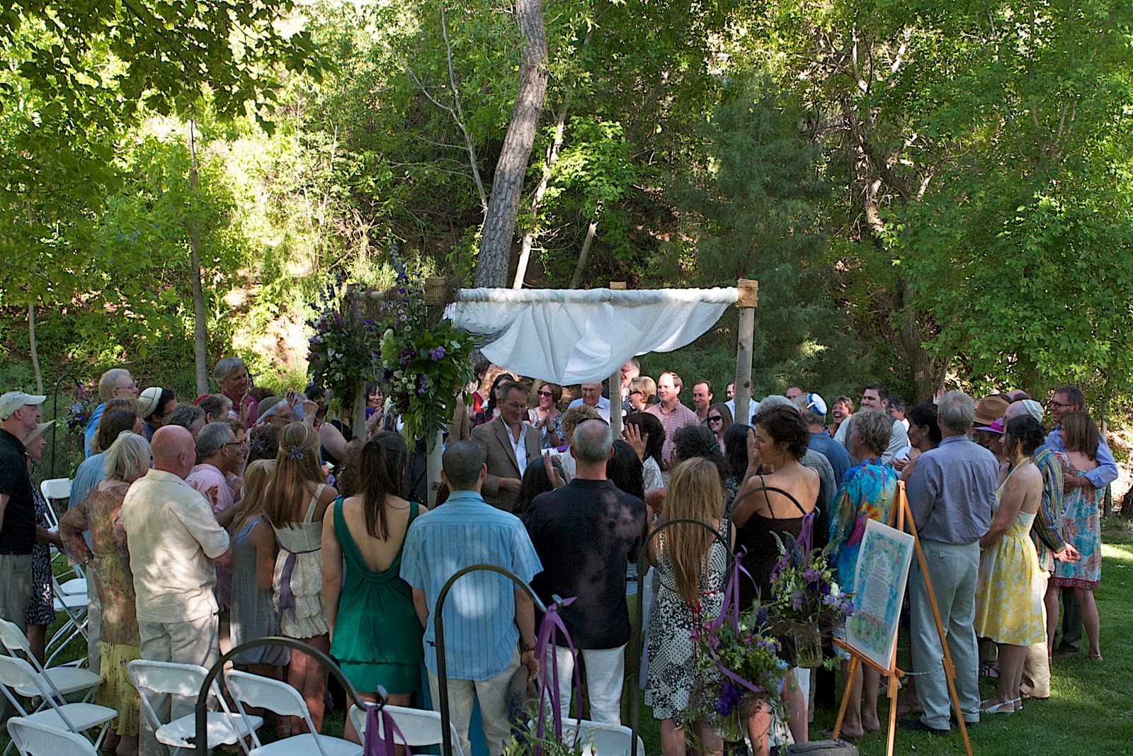 We helped create a wedding that truly reflected their vision and was central to who they are as a couple. An emphasis on spirituality, contemplation, connection with nature, and joy were some of the values Donna & David wanted to imprint on their wedding. They wanted to create a very sacred space around their ceremony and brought in both the Jewish and Christian tradition by marrying under the huppah, holding a Ketubah signing and bedecken, incorporating the Seven Blessings, drinking of the wine, Christian prayers and Jewish readings, breaking of the glass and more. Red Rock Haven, a private residence in Lyons, Colorado provided a stunning backdrop for both the ceremony & reception. The ceremony took place right on the St. Vrain River which added a special element to the ambiance. Their happiness and love on their wedding day is evident in the images below.