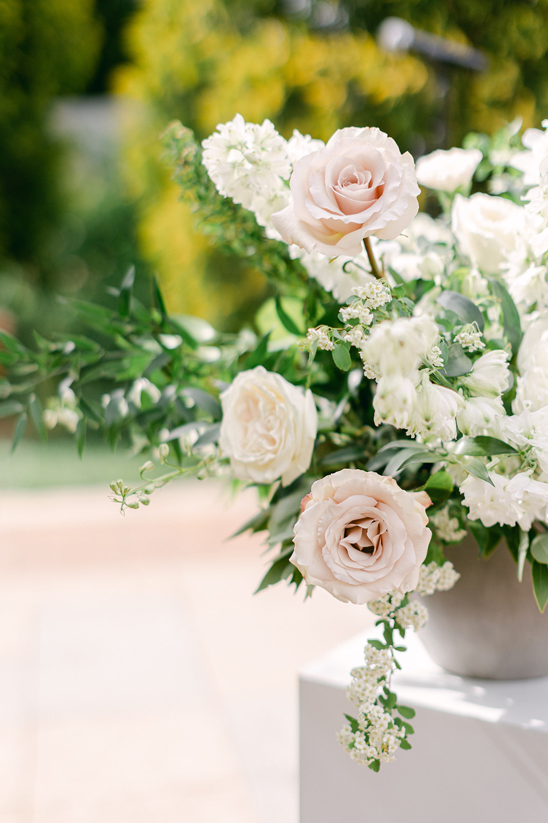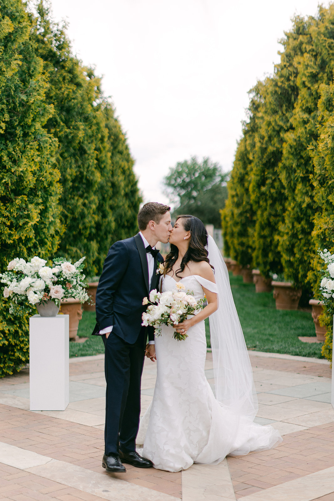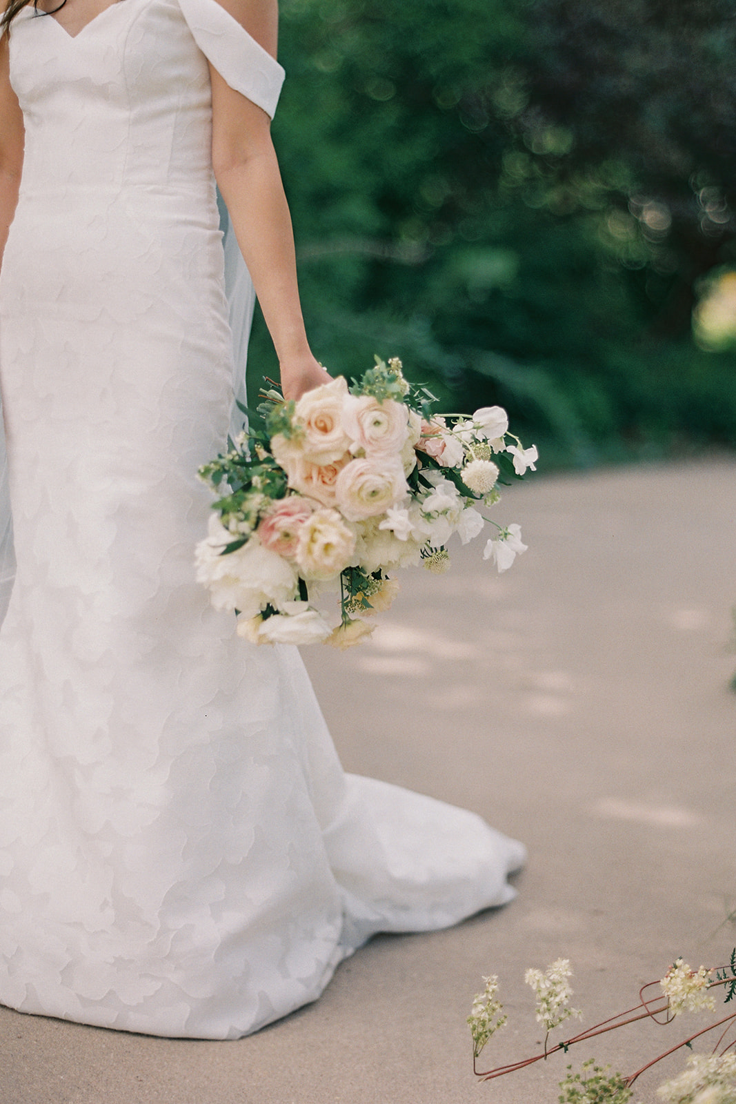 We embraced each corner of the grounds to create “roaming” garden party vibes, finding beauty and purpose in our surroundings and a space that was so important to the nearly newlyweds. With a glass of sparkling in hand, stylish guests pursued the property before settling in to watch E + J share their forever vows in the iconic Romantic Gardens, flanked by lush foliage accented by blooming arrangements. Using the garden and it’s seasonal blooms as our compass, primary petal design by Figment Floral was strategically bloom forward yet intentional, playing with the negative space in a way that has come so naturally into trend this year.