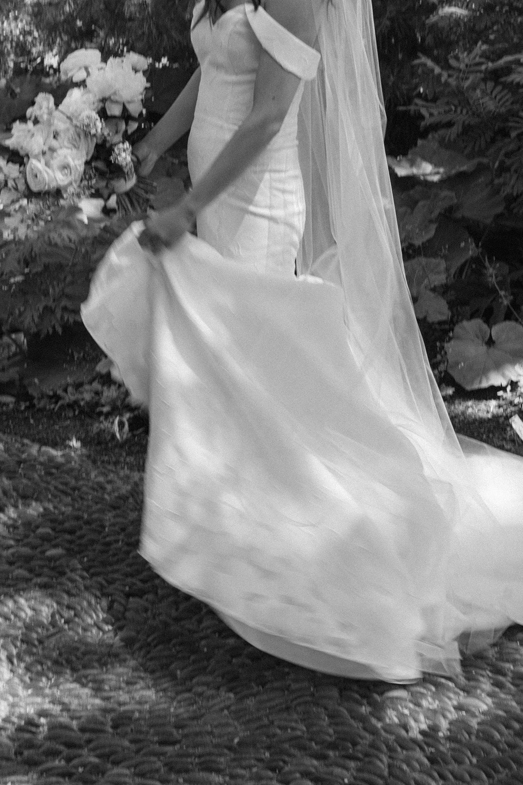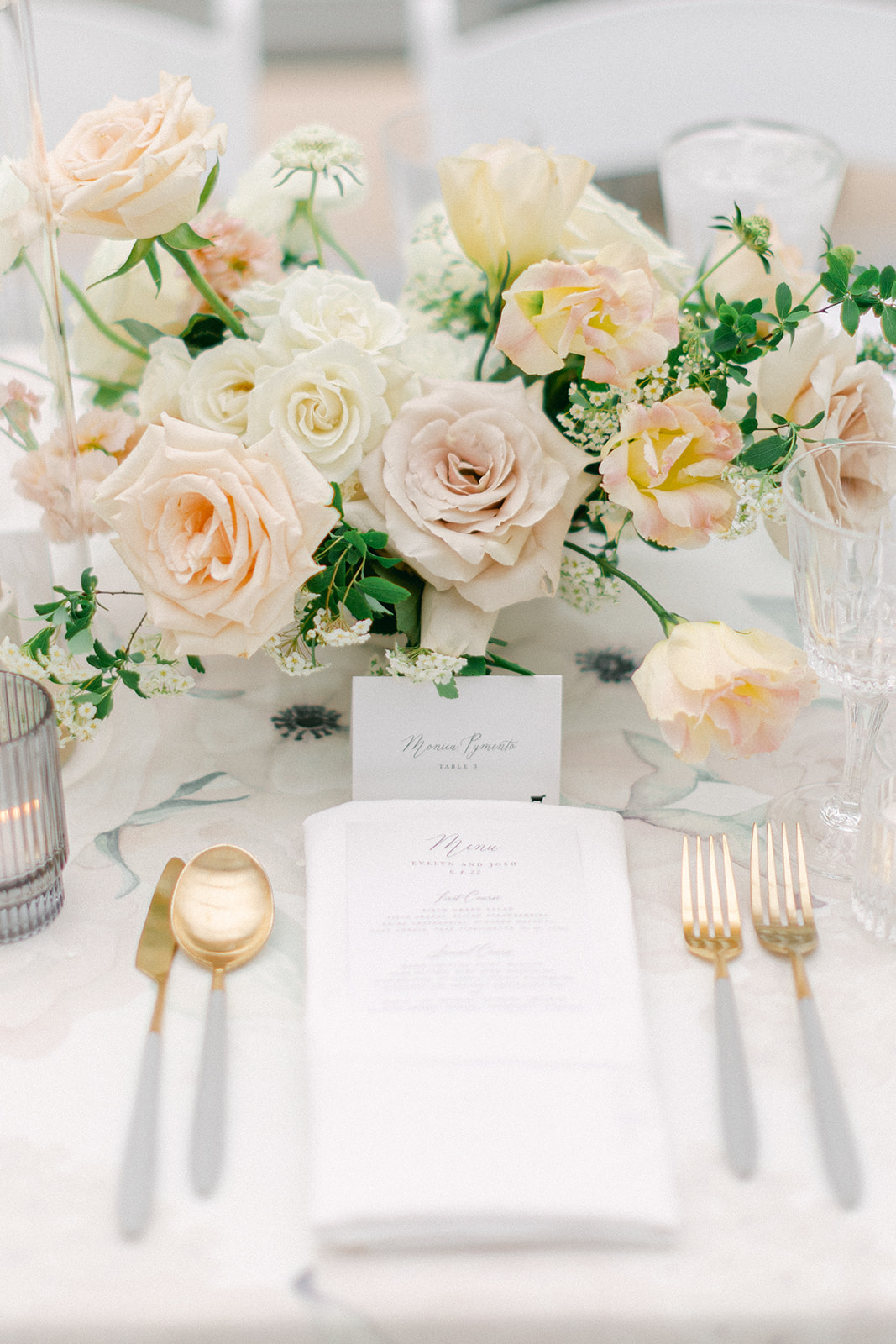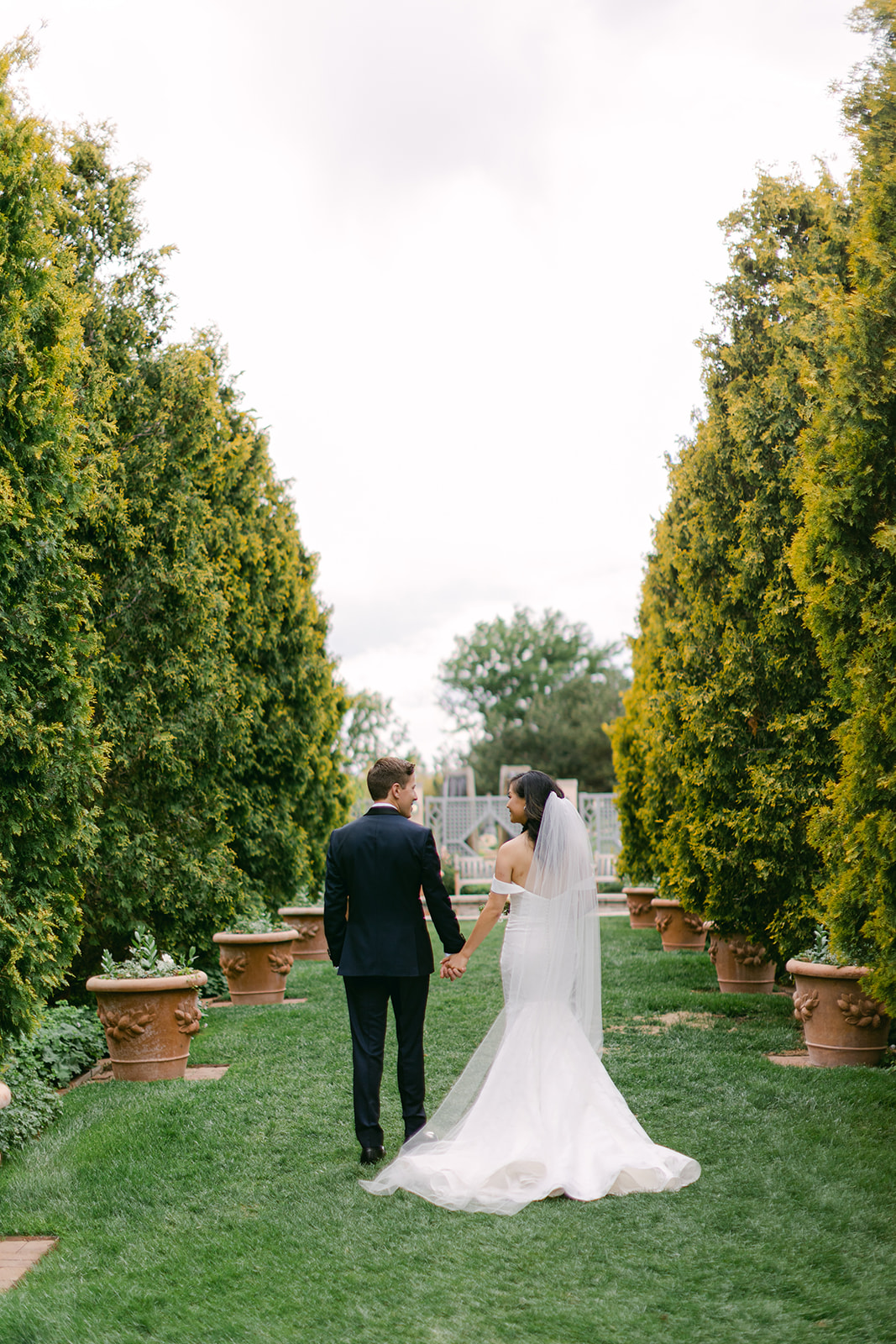 We embraced each corner of the grounds to create “roaming” garden party vibes, finding beauty and purpose in our surroundings and a space that was so important to the nearly newlyweds. With a glass of sparkling in hand, stylish guests pursued the property before settling in to watch E + J share their forever vows in the iconic Romantic Gardens, flanked by lush foliage accented by blooming arrangements. Using the garden and it’s seasonal blooms as our compass, primary petal design by Figment Floral was strategically bloom forward yet intentional, playing with the negative space in a way that has come so naturally into trend this year.