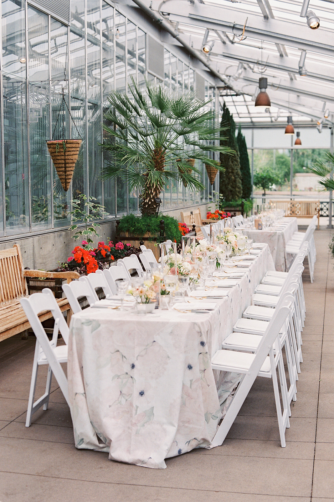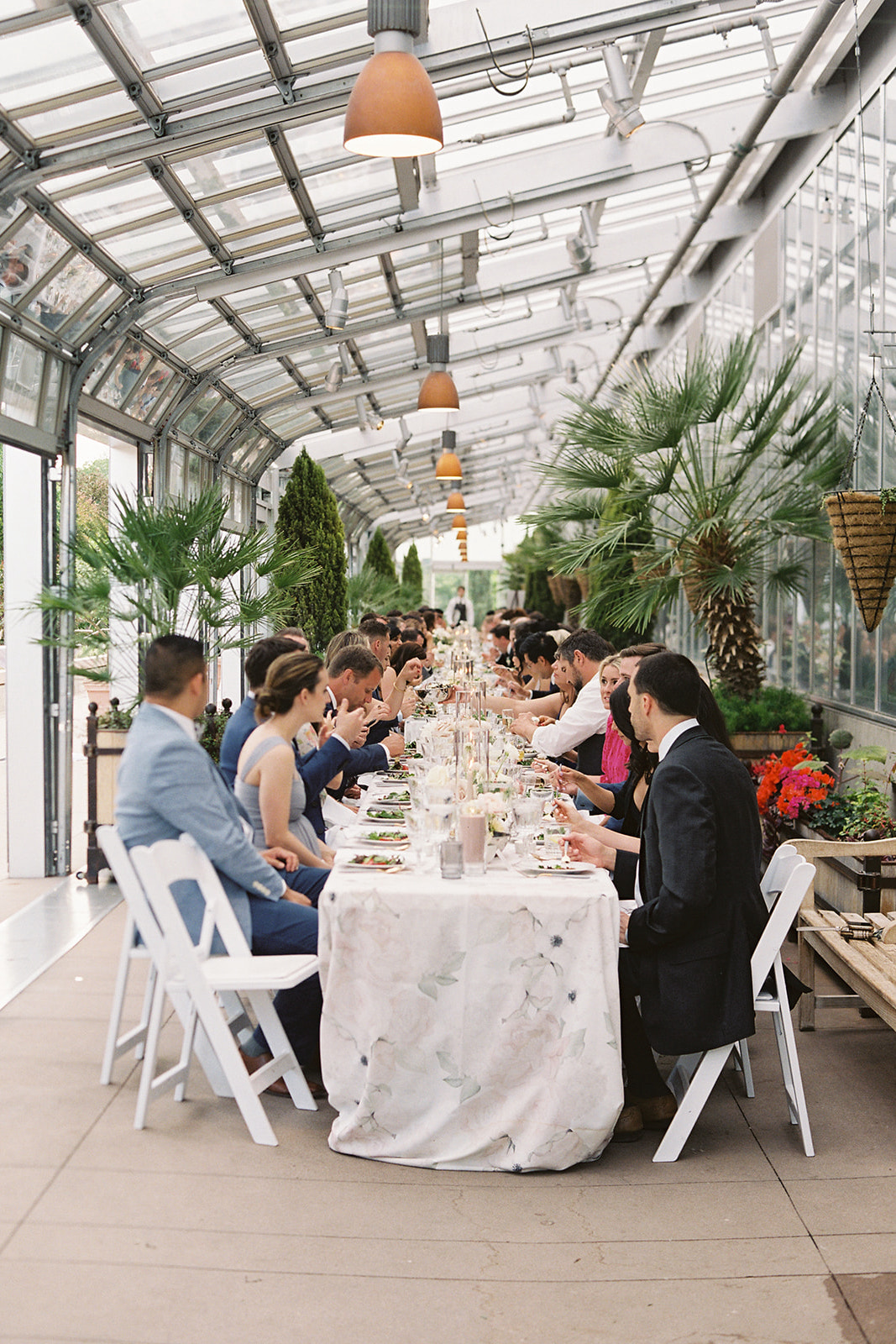 Once the party meandered over to the Orangery greenhouse for cocktails and dinner, the theme continued through playful combinations of uniquely cut china glassware and swoon-worthy floral linens – nodding to classic touches without dipping into trite or tradition. The result? A fresh, curated and memorable celebration for two very special people lifted in love and warmth of their closest friends. The festivities finished in the third and final stop of the evening with the beats of The Get Down Co in Marnie’s Pavilion, lending to the distinctive path of this urban garden wedding.