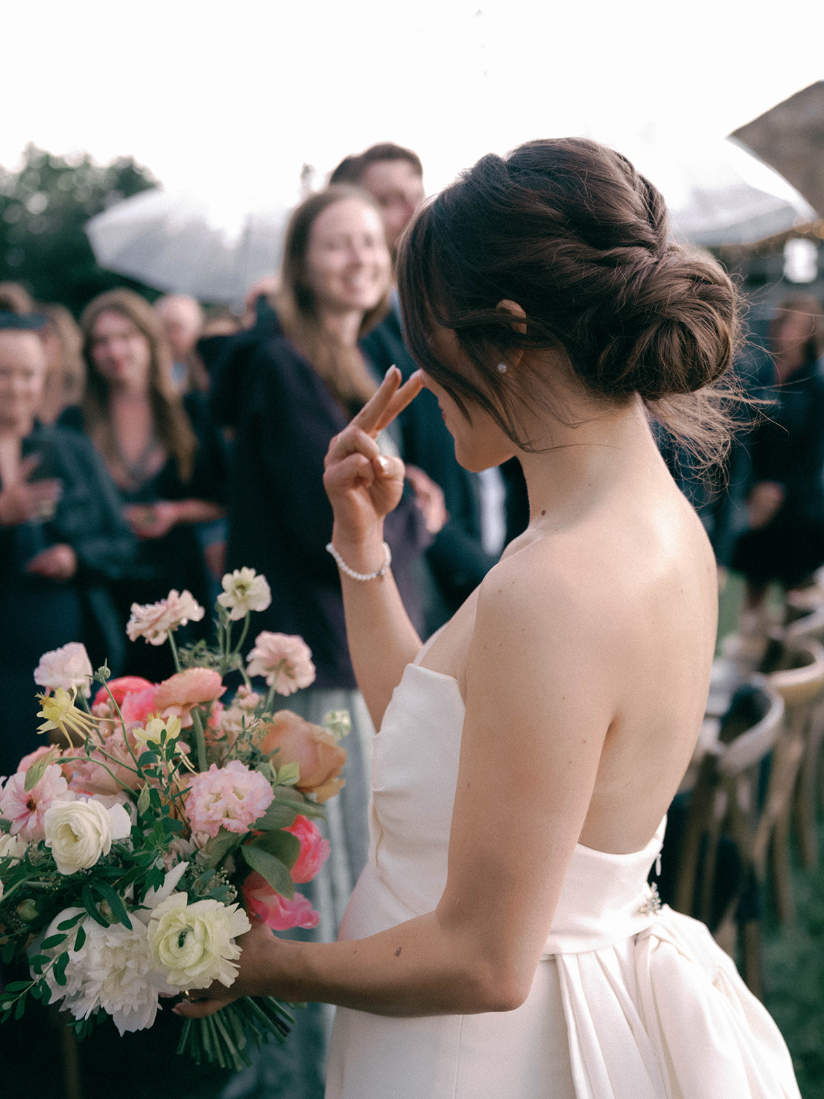 With our wedding vision honed, it was a no-brainer to bring Frannie on from Figment Floral, a true soul-sister and extraordinary creative. Frannie took my vision of elevated, understated garden party and dusted her beauty on top of it – perfectly pairing peachy and pink tones to emulate a floral design to both withstand the test of time, but in my (very biased!!) opinion, flirt with the fun trends of the moment. If the audible squeal (okay, scream) at my bouquet reveal wasn’t a telling indication of Frannie’s immense talent and our joy, I just don’t know what would be. I’d be remiss not to give a ~moment~ for the linens – lovingly selected with the support of Kara our MVP of Nuage Linens – that complimented the existing design elements and tied it together perfectly. My ever-trusty team at Elite Entertainment (Hi Yan, Hi Gabe!!) brought it home with just the right amount of draping, lighting and AV, and to be on the “client side” when we’ve conquered so many events together as colleagues was a total delight.