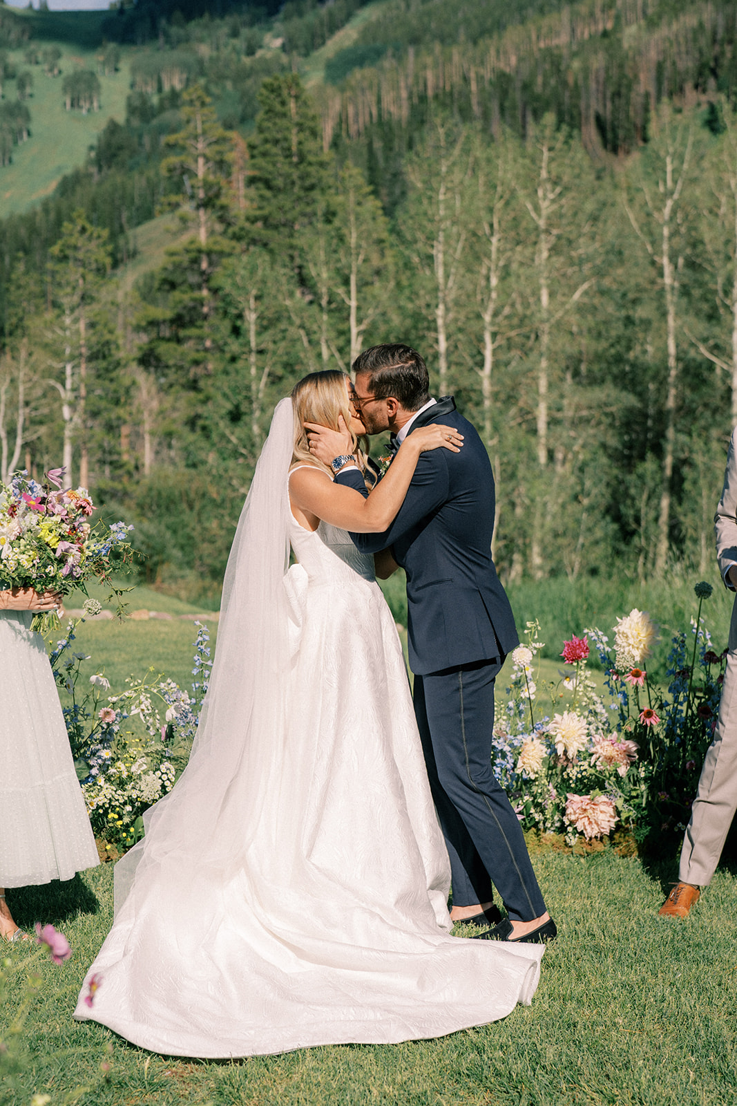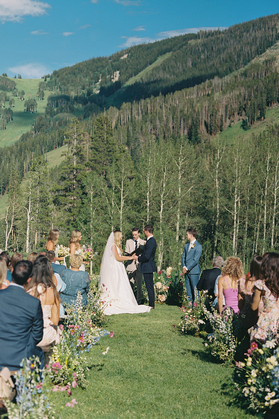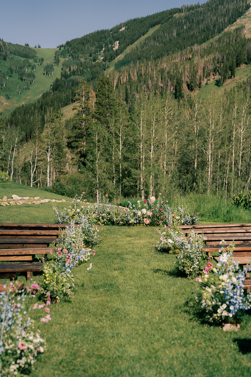 Finally, it was the wedding day! As we tracked another pesky Colorado storm, we were determined to execute as much of this wedding outside as possible and we’re sure glad we did. It turned out to be the most picturesque Colorado day. The ceremony was filled with florals from Alli J Floral that looked like they were growing straight out of the ground, the mountain wildflower, springs meets summer vibe came to life – all captured stunningly by Jess Leigh Photography.