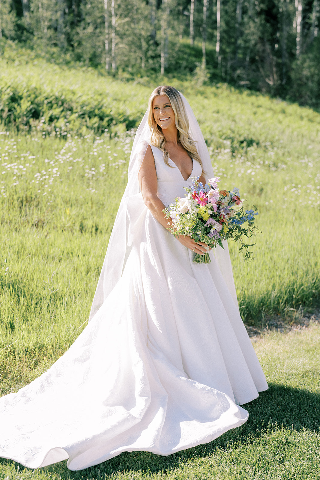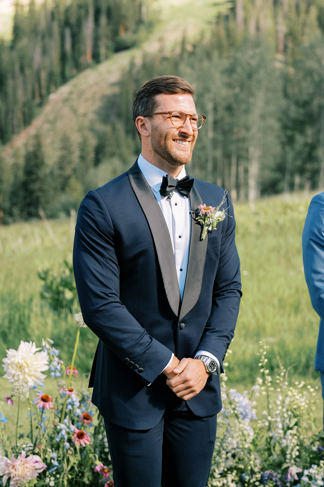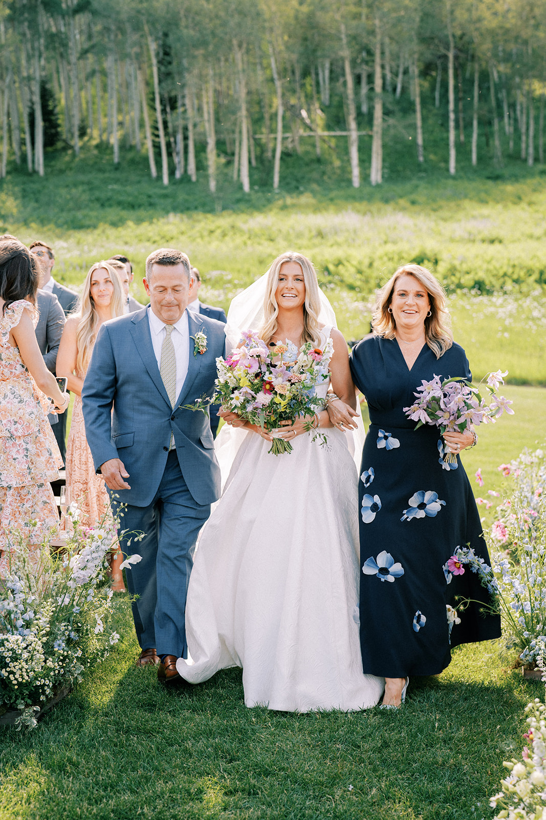 Finally, it was the wedding day! As we tracked another pesky Colorado storm, we were determined to execute as much of this wedding outside as possible and we’re sure glad we did. It turned out to be the most picturesque Colorado day. The ceremony was filled with florals from Alli J Floral that looked like they were growing straight out of the ground, the mountain wildflower, springs meets summer vibe came to life – all captured stunningly by Jess Leigh Photography.