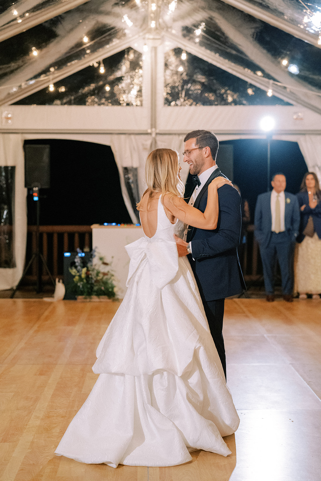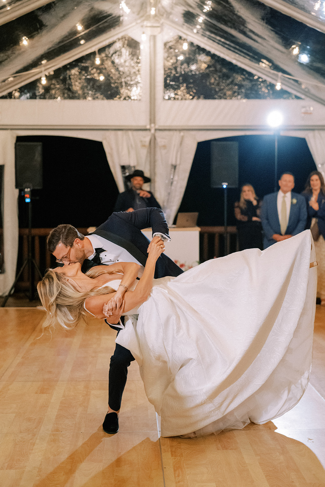 After heartfelt speeches, guests made their way to the dance floor for a night of dancing under the stars to music by The Get Down and were able to stay close to the action if they wanted to take a break but beautiful lounges by Hazel Grove Rentals.