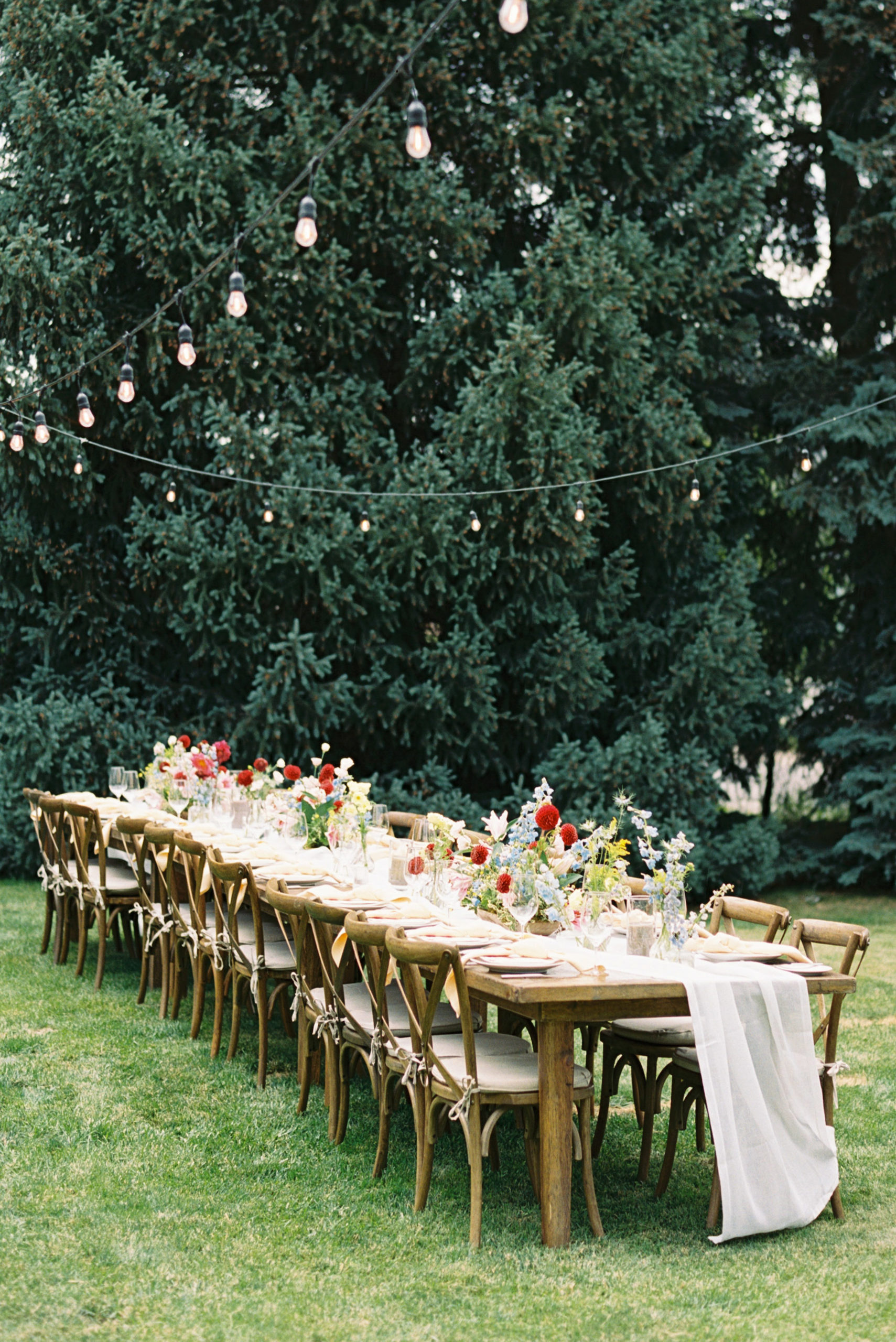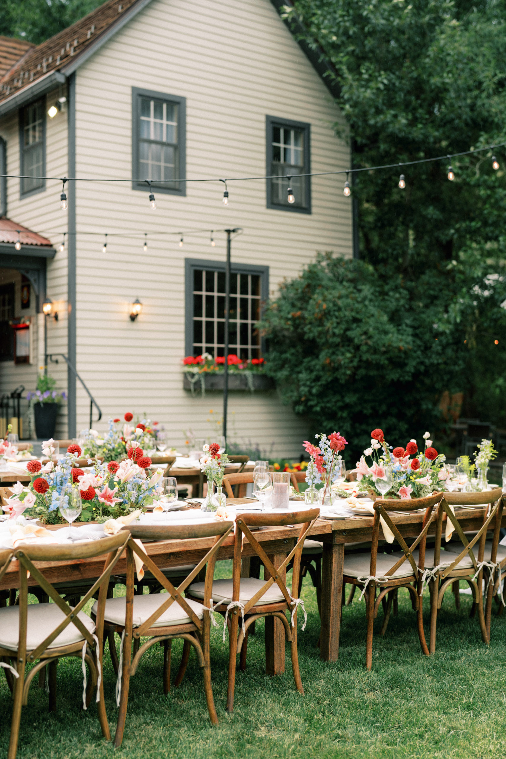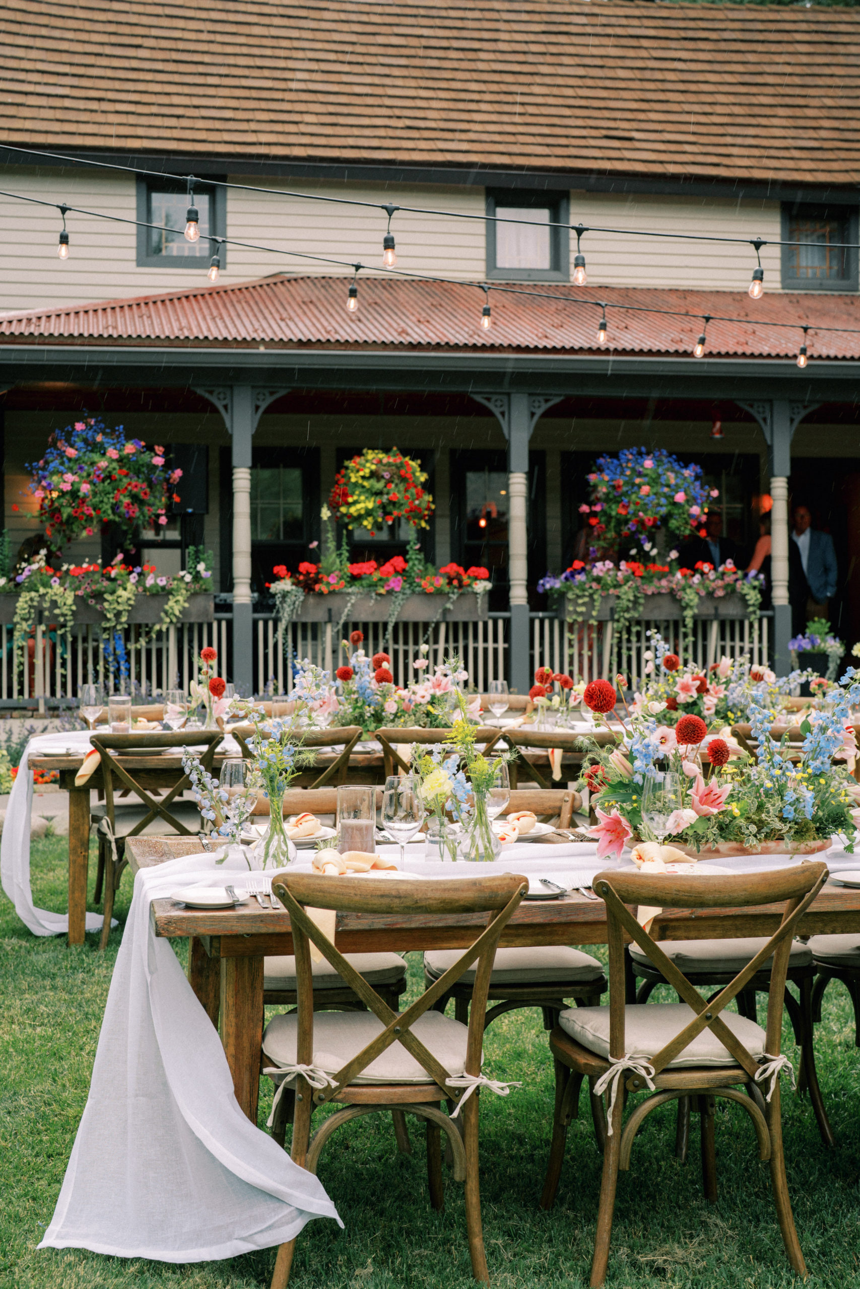 We kicked off the weekend with an intimate rehearsal dinner at Mirabelle Beaver Creek. Nestled in a vintage house right inside the main gates of the resort, guests gathered for dinner al fresco. While the rain might have had other plans, we rolled with the punches and it was the perfect kick-off to their weekend.