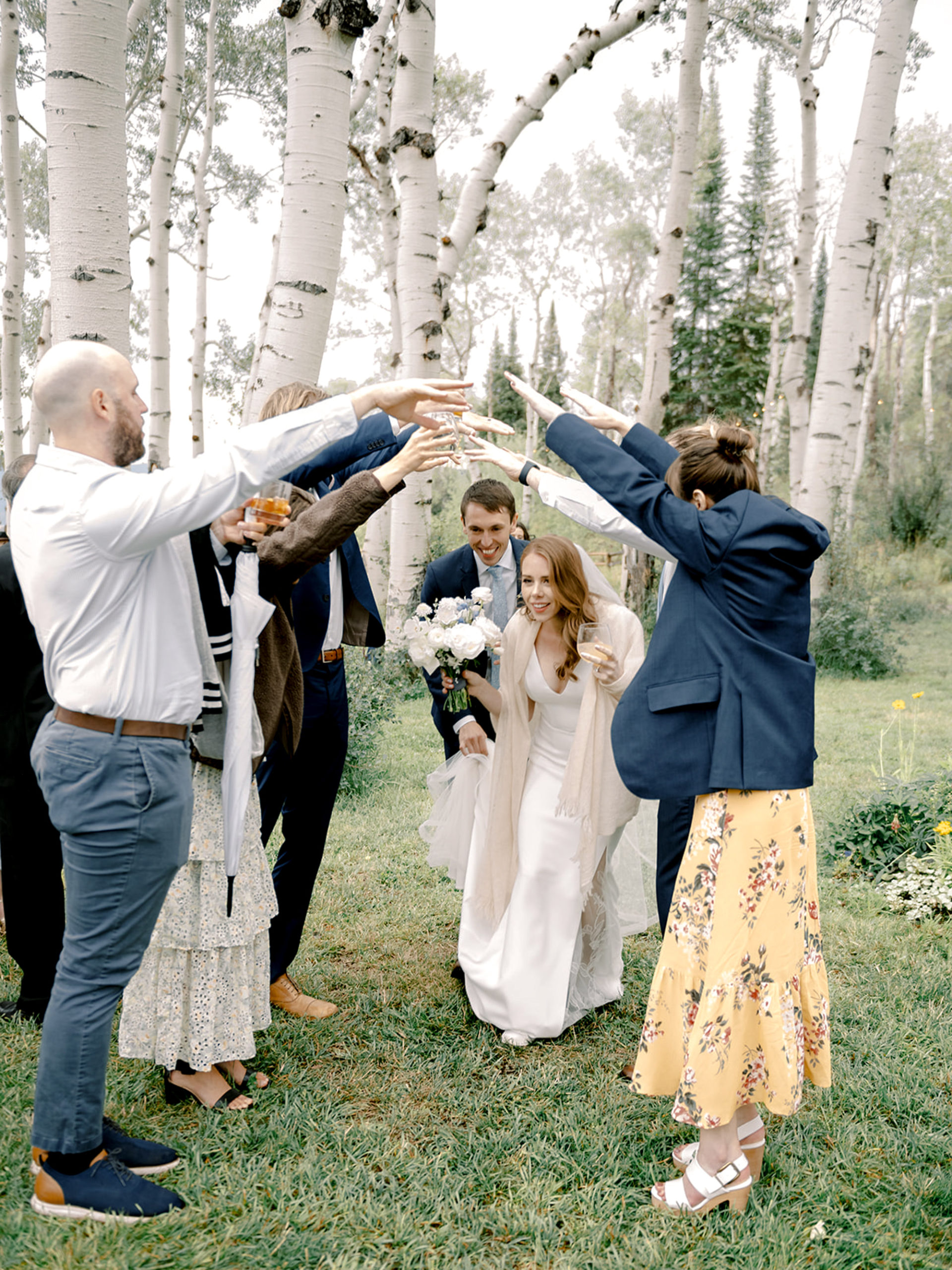 A British boy met an American girl, and the rest is history! Kendall and Chris brought their friends and family from all over the world to celebrate in the epic mountain town of Steamboat Springs, Colorado, and boy, did they celebrate! It was one of those quintessential Colorado weather days, where it’s supposed to be a warm summer day and turns into a rainy one, but the rain didn’t stop the celebration. They warmed up by packing the dance floor and dancing for hours to the epic tunes from Wash Park Band, sipping on burnt orange old-fashioneds and playing the beloved British game of croquet. The number one priority for Kendall and Chris was to show their international guests a fabulous Colorado time, and we achieved that by bringing in personal elements from the couple. Their Harry Potter seating chart, seasonally curated menu and bar, and British-inspired designs were all nods to their life together. We LOVED this day and couple so much!