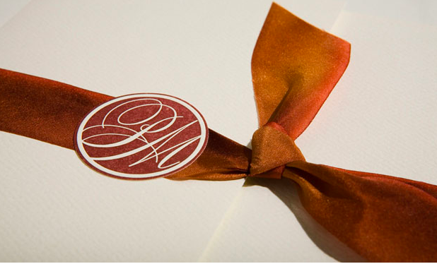 10. One tip for invitations on a budget is…Oh, I have a few, but definitely mixed printing — offset/flat printed invitation envelope and response envelope with a letterpress printed invitation an response card. And belly bands to wrap around the invitation and the enclosures to keep everything together instead of expensive folders.