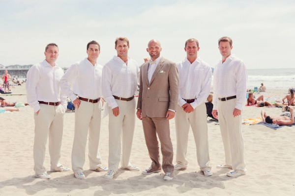 Think about the wedding venue. Is it a grand ballroom? Is it a rooftop wedding in the city? Is it at a vineyard in the countryside? On top of a mountain? In a garden? On the beach? Maybe it’s on a ranch or farm? The venue and the time of day will help guide the formality and style of the groom’s and groomsmen’s attire.