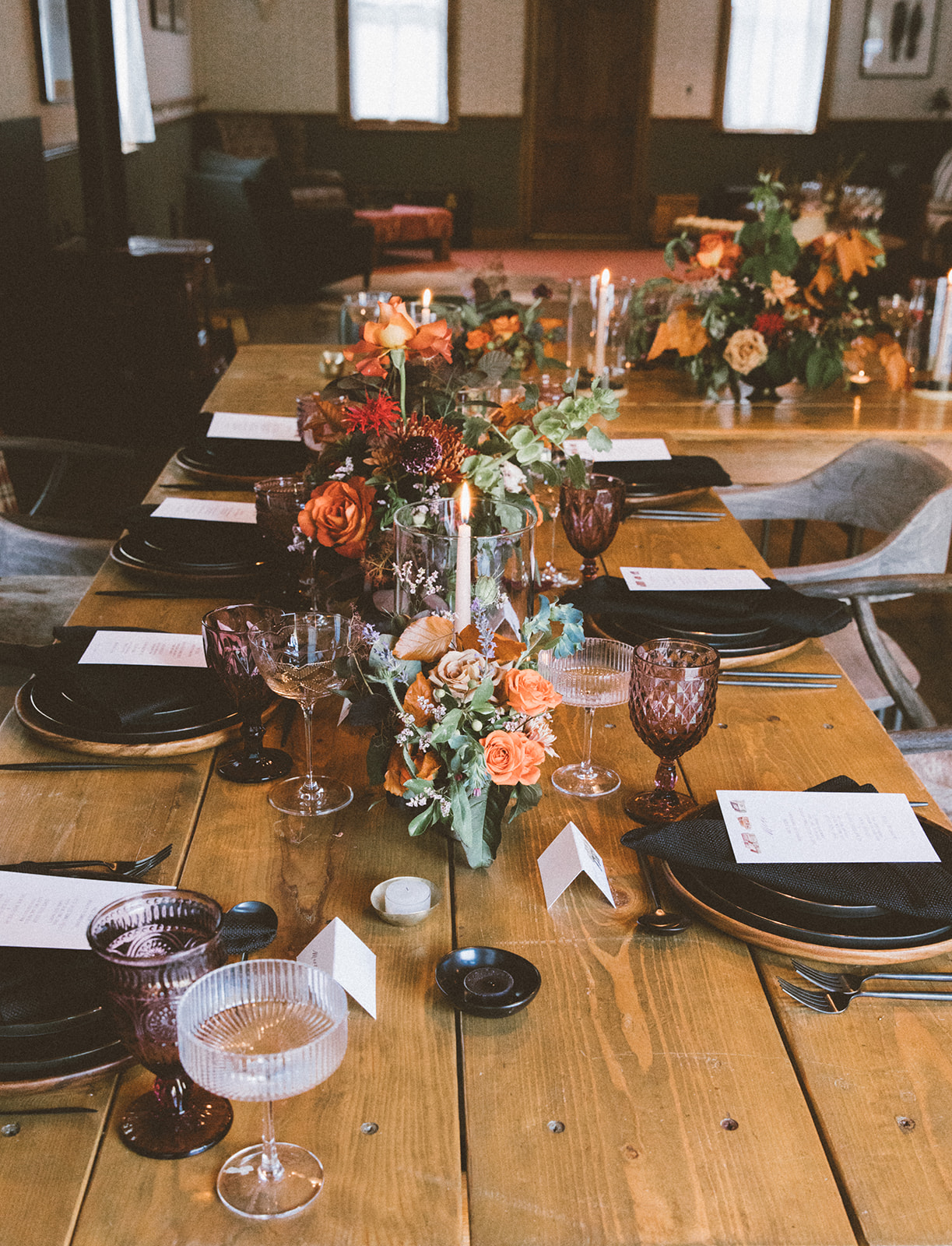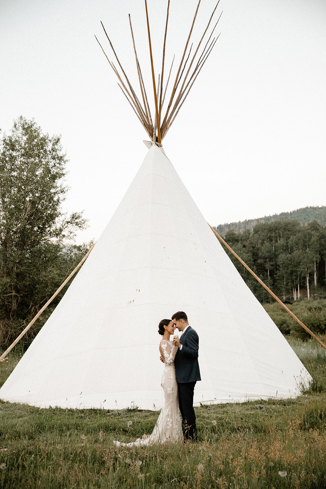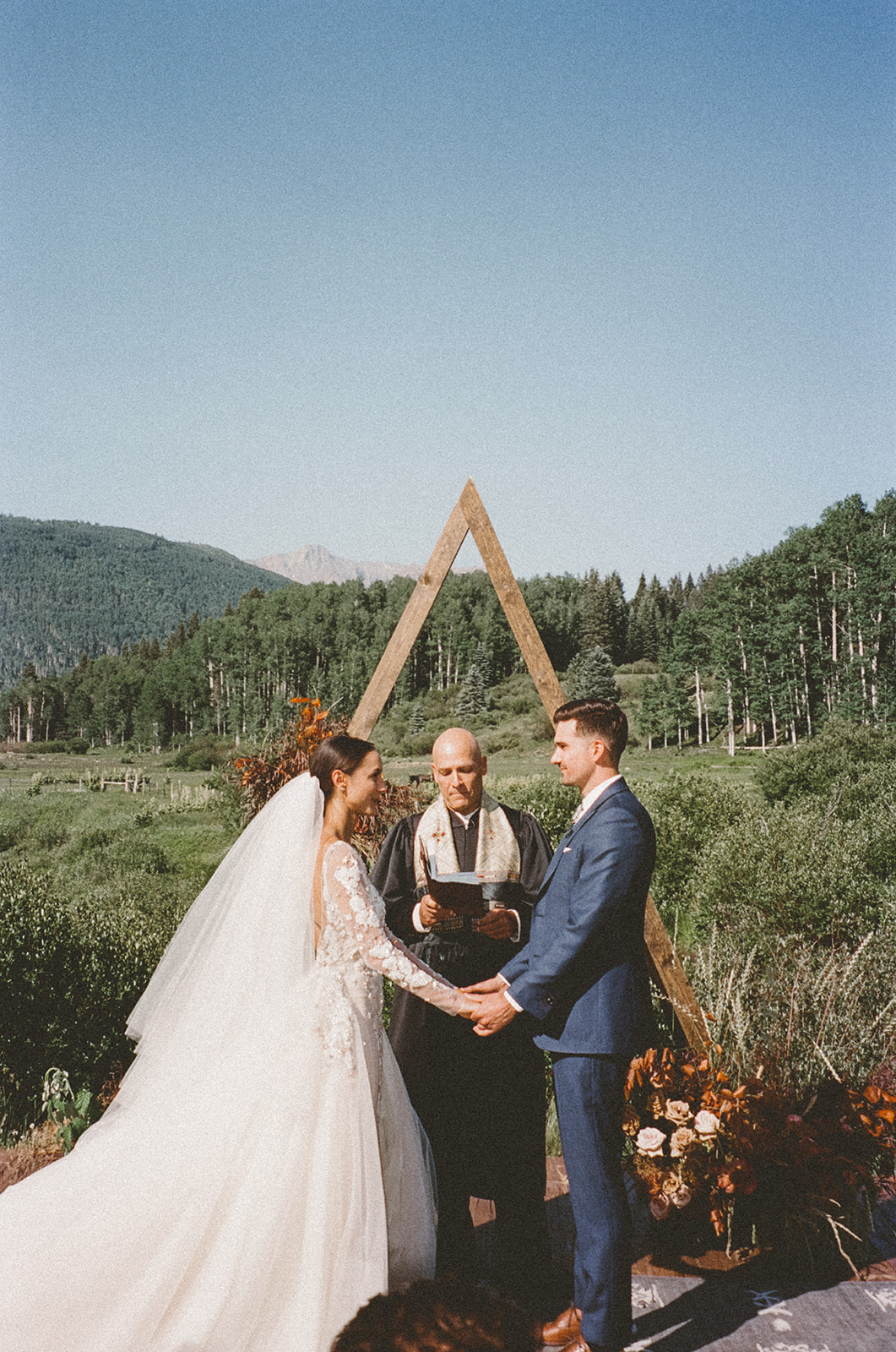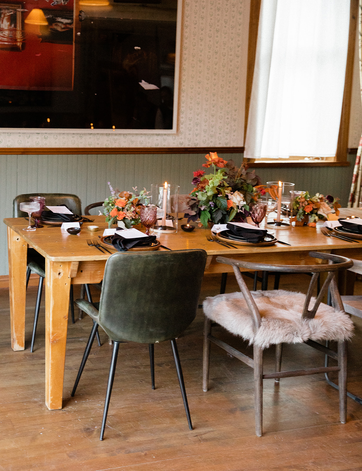 Holly + Matt’s intimate wedding was full of personality with rich textures of leather, layered woven rugs, and warm woods with moody moments full of terracotta tones, burgundy, caramel, and greenery playing to the beauty of the mountains and the romantic mining town where it all took place.