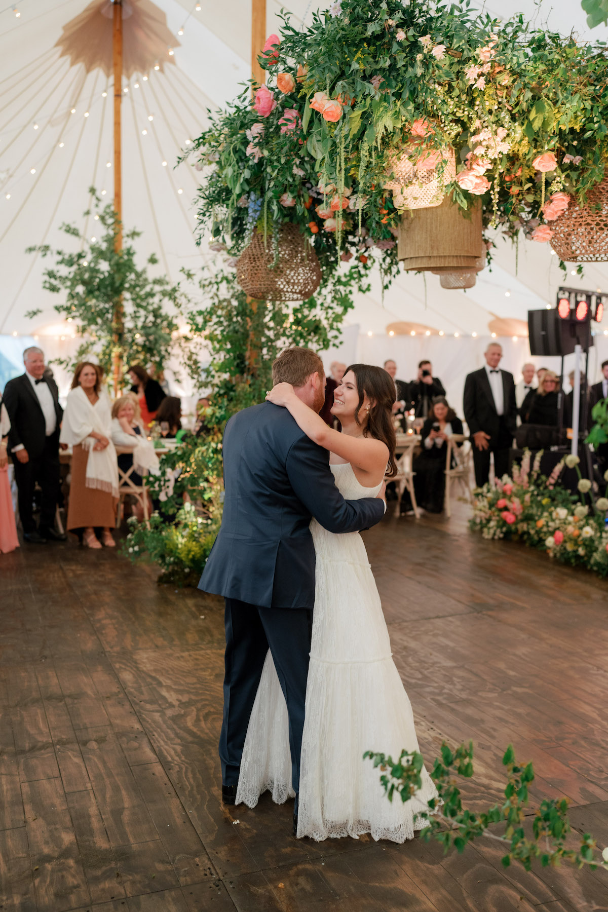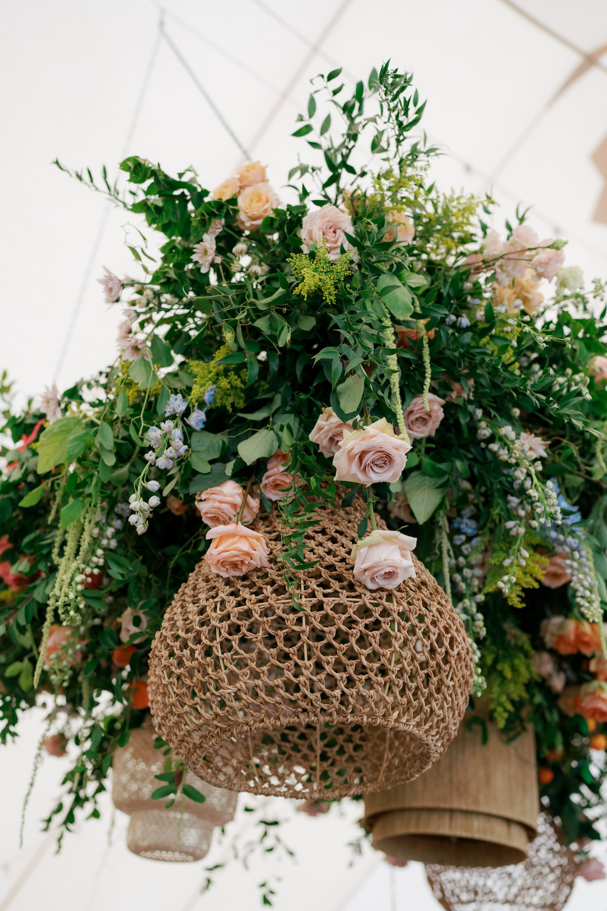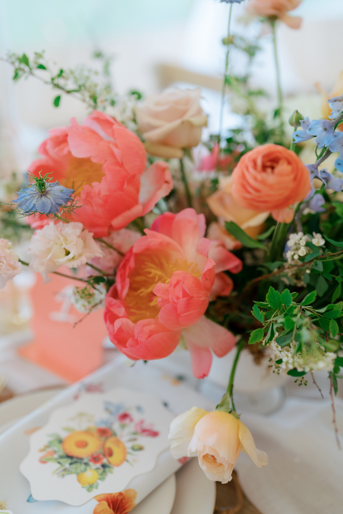 After the joyous ceremony, guests enjoyed cocktail hour and found their seats in the reception by way of a growing garden seating display, planting seeds for all the love and happiness for the newlyweds. Whimsical clouds of florals and greenery with rattan touches floated above the tables that were adorned with coral, olive, and honey glassware, petal chargers, and custom napkins that nodded to their wedding invitation suite. We’re still floating on cloud nine and wish we could live in this garden dream forever! Here is a sneak peek into Chloe + Josh’s day! We can barely wait to share even more with you!